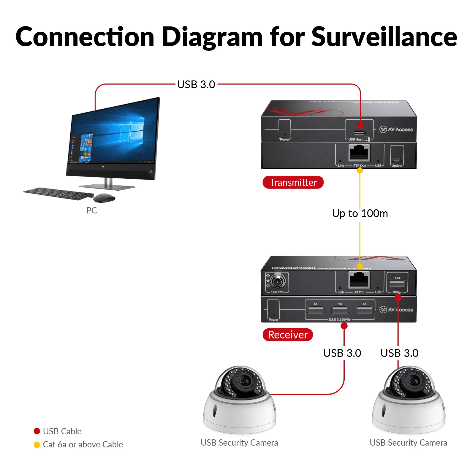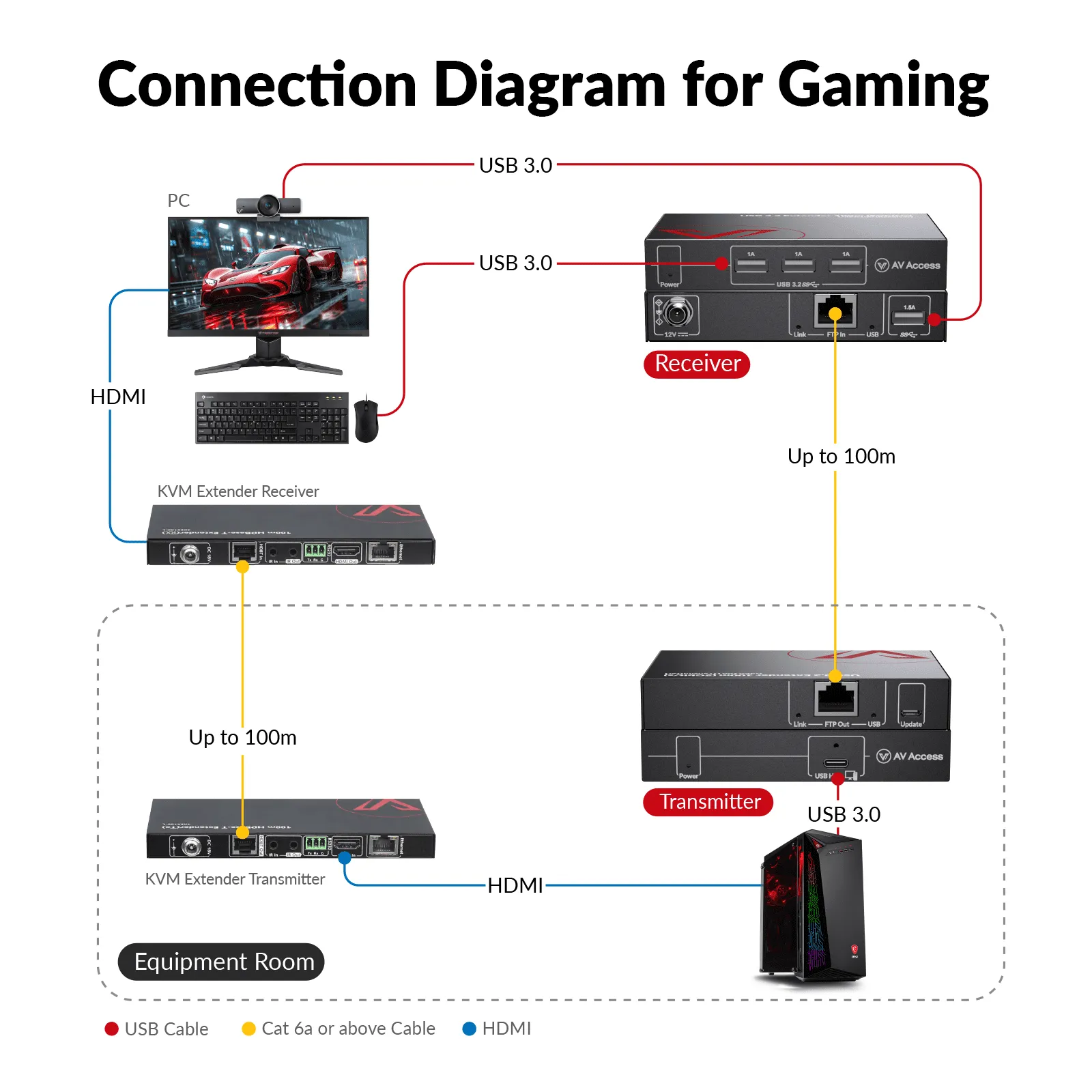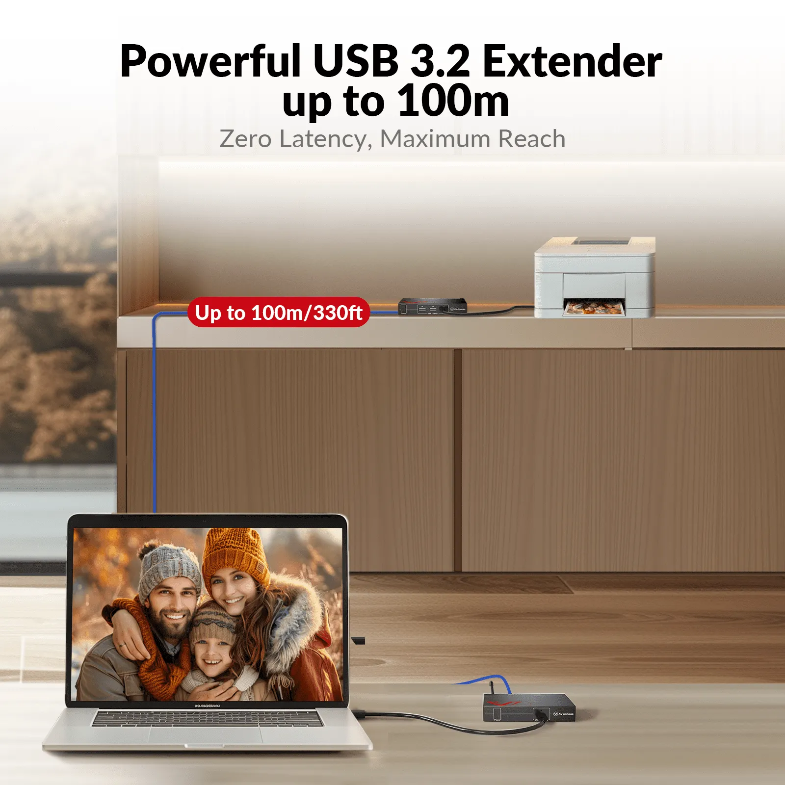 ● Ultra-Long Transmission Range & Zero Latency: Extends USB 3.2 signals up to 330ft (100m) over a Cat 6a or above cable, with zero latency. Perfect for office work, gaming, surveillance, live streaming/recording, astronomical observation, and more.