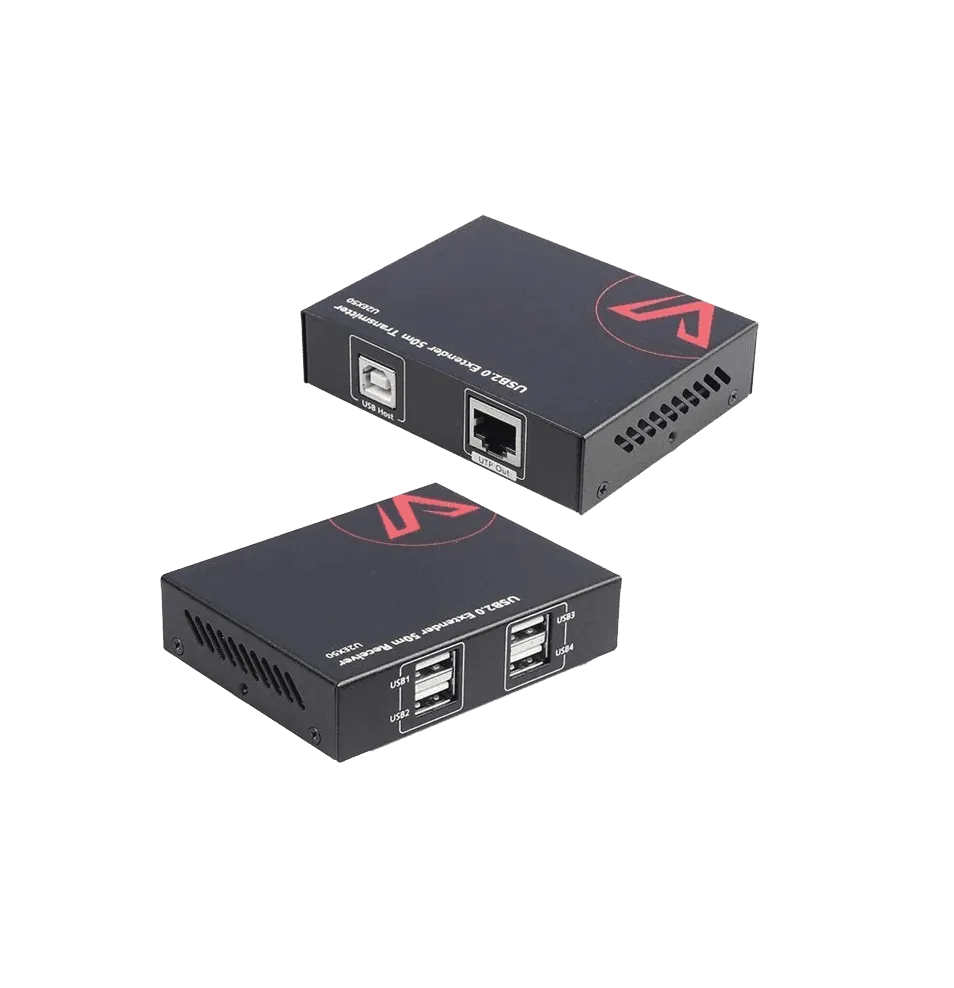 This extender consists of a transmitter and a receiver, transmits USB signals over Ethernet and works with CAT5e or above cables.